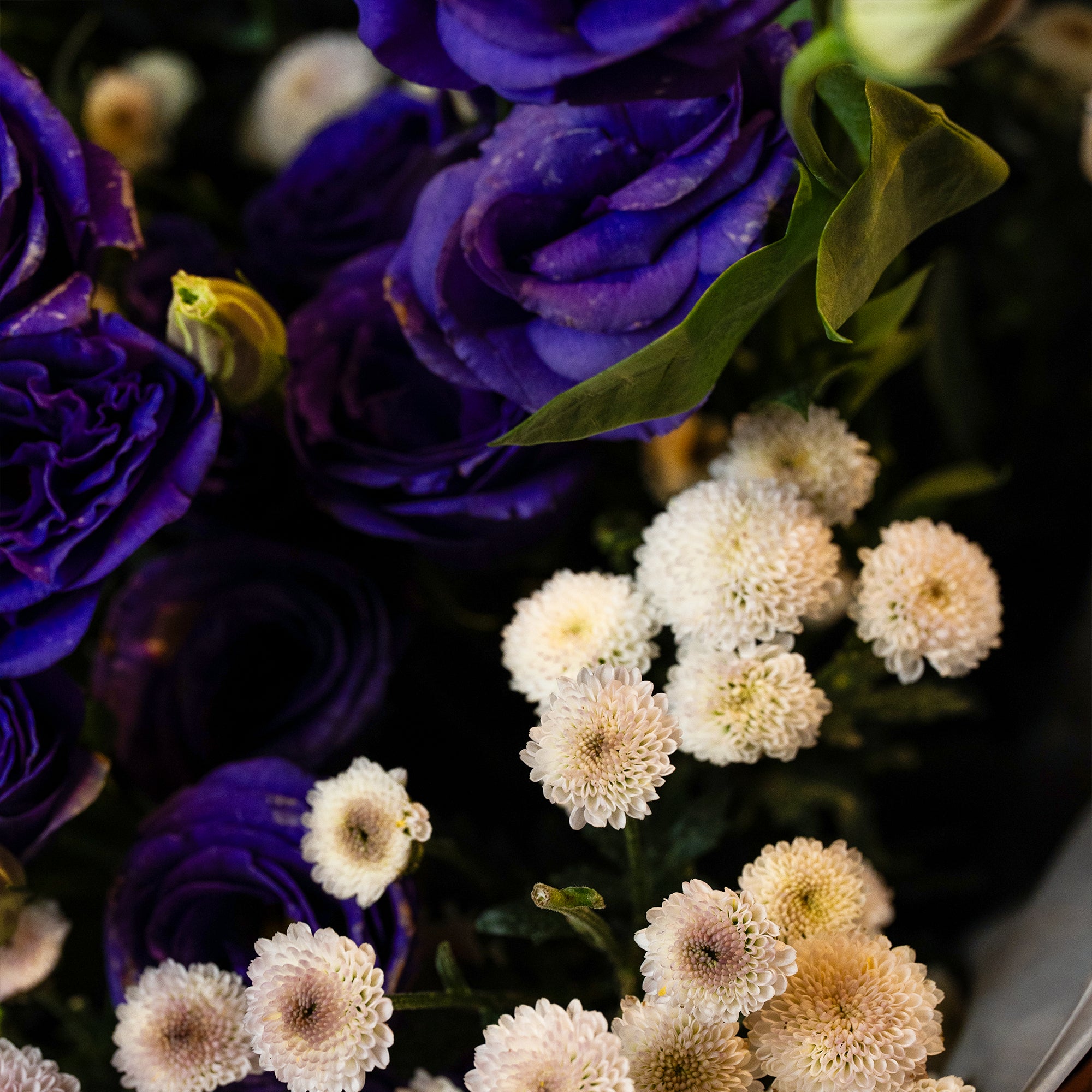 Bright Purple lisianthus wrapped in cool-toned hues for a fresh, contemporary Valentine’s bouquet. Romantic without being traditional — perfect for someone who loves something different.