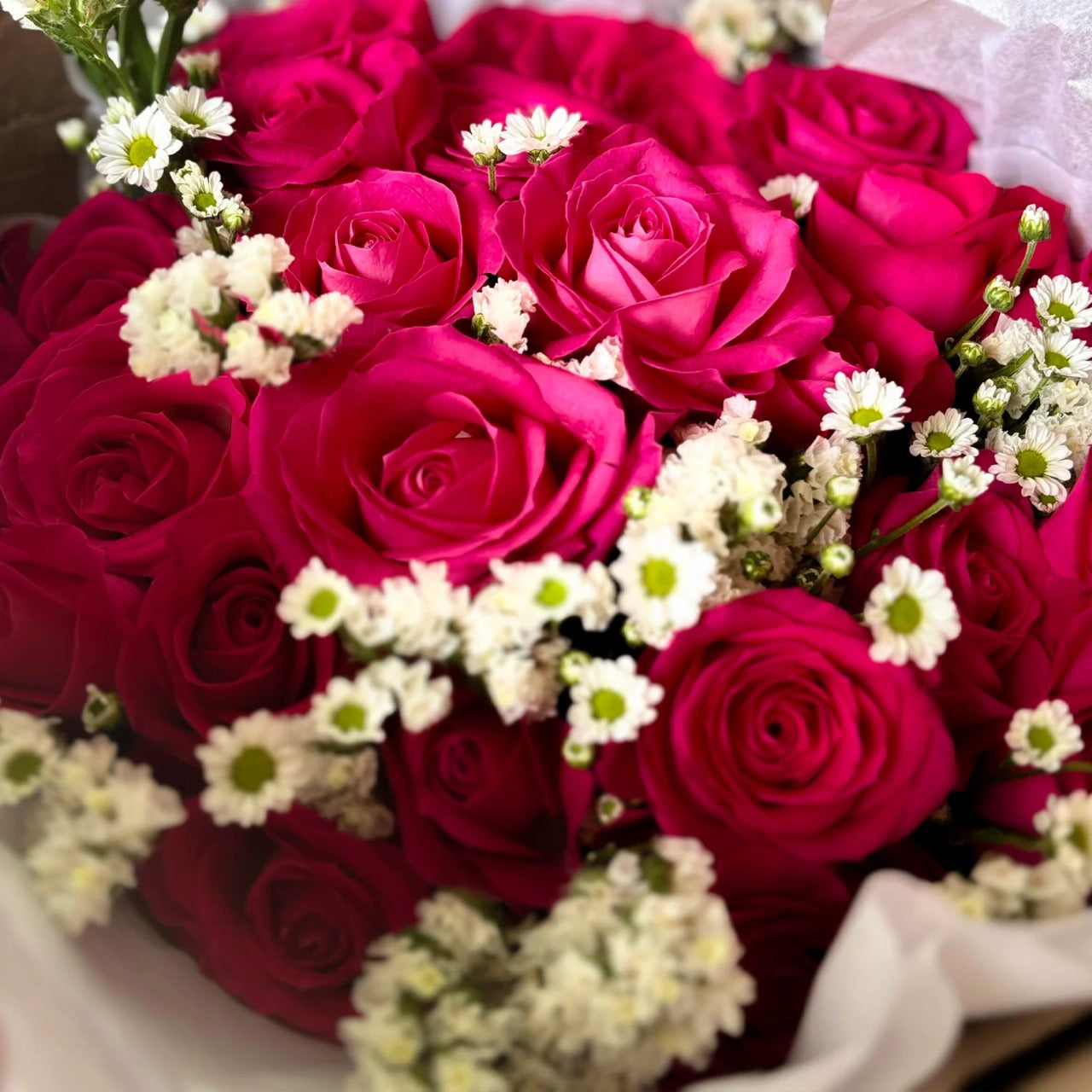 A cherry bouquet of premium quality Roses in bubble gum shades and ivory. Item Includes: Premium Quality Roses in shade of pink and white with filler flowers