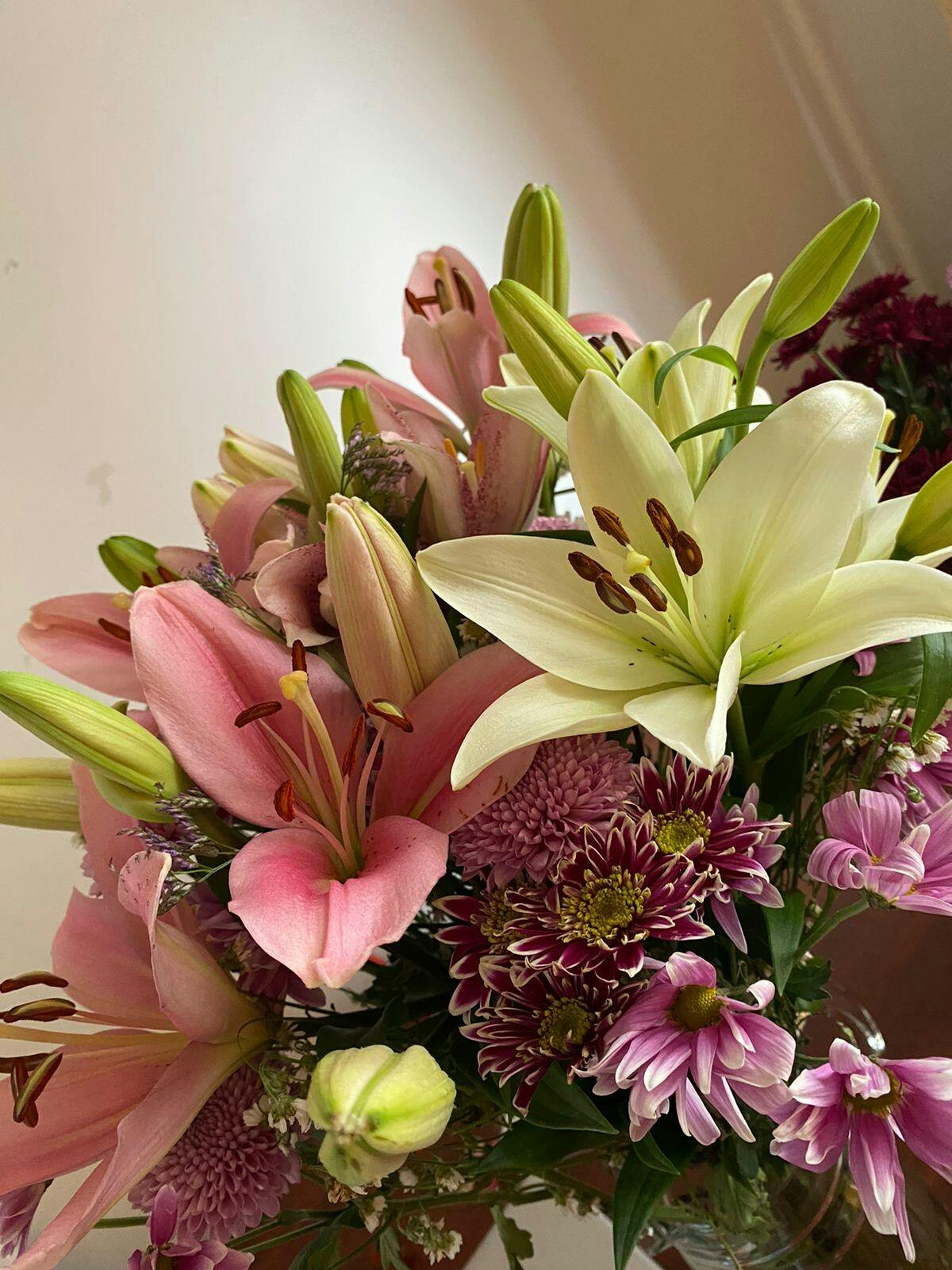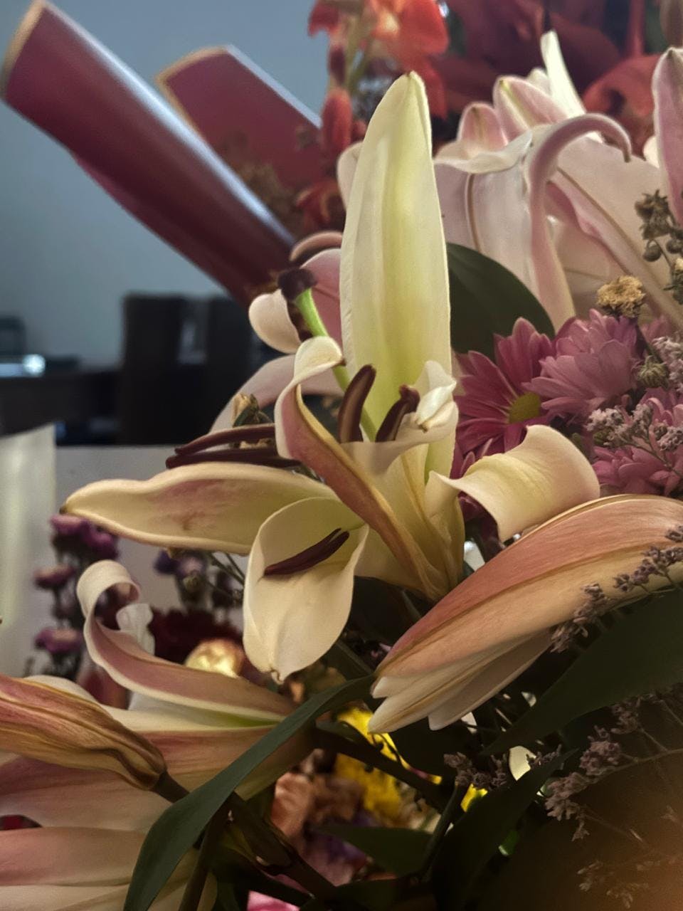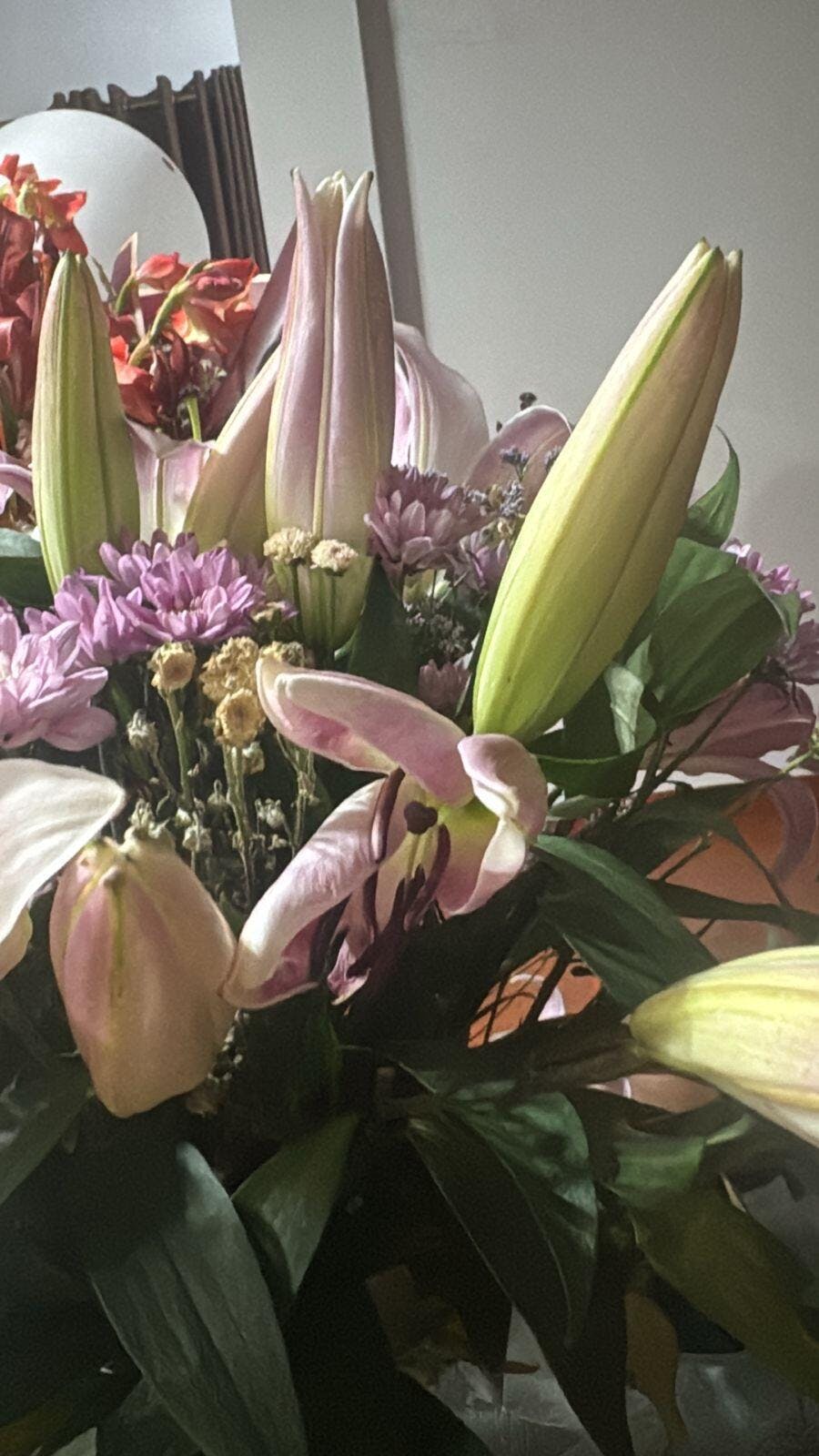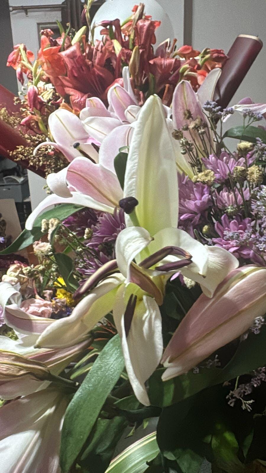 Large- 15 stems of pink lillie's + fillers and wrapping