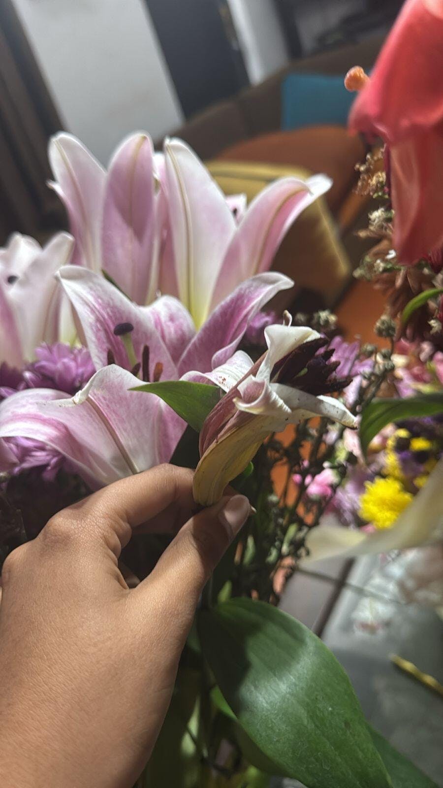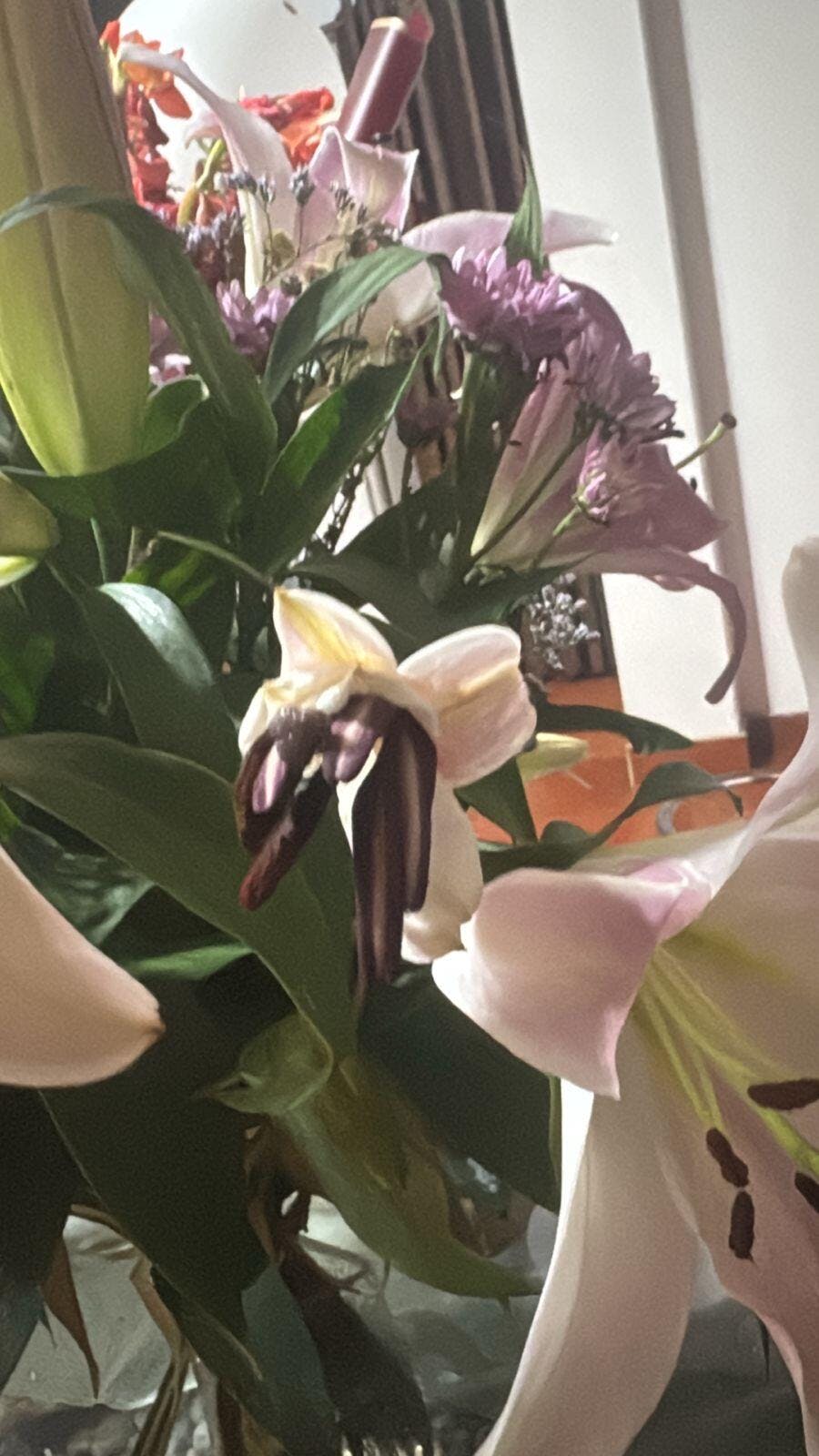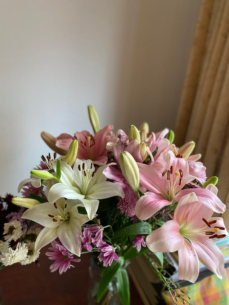 Large- 15 stems of pink lillie's + fillers and wrapping