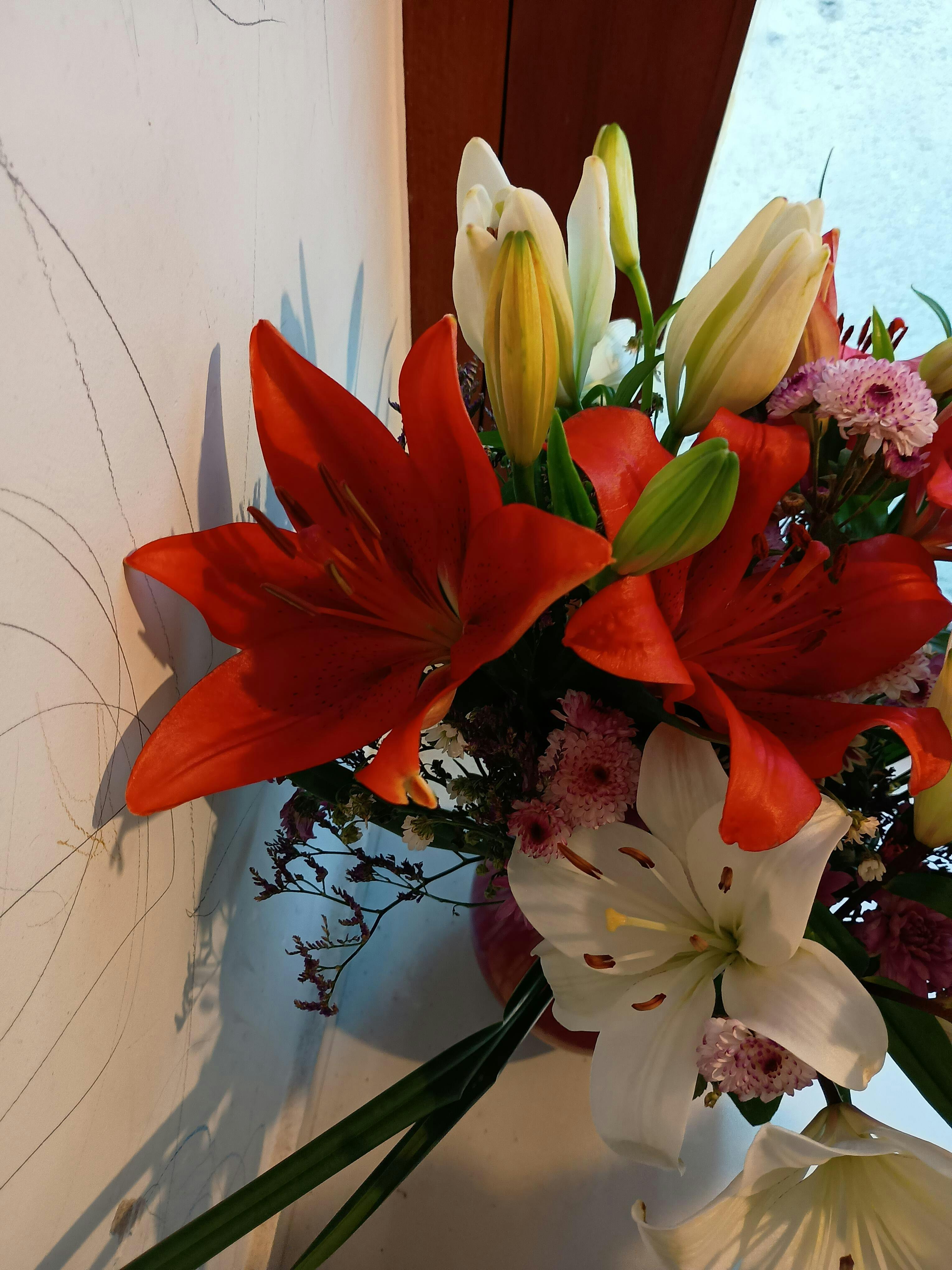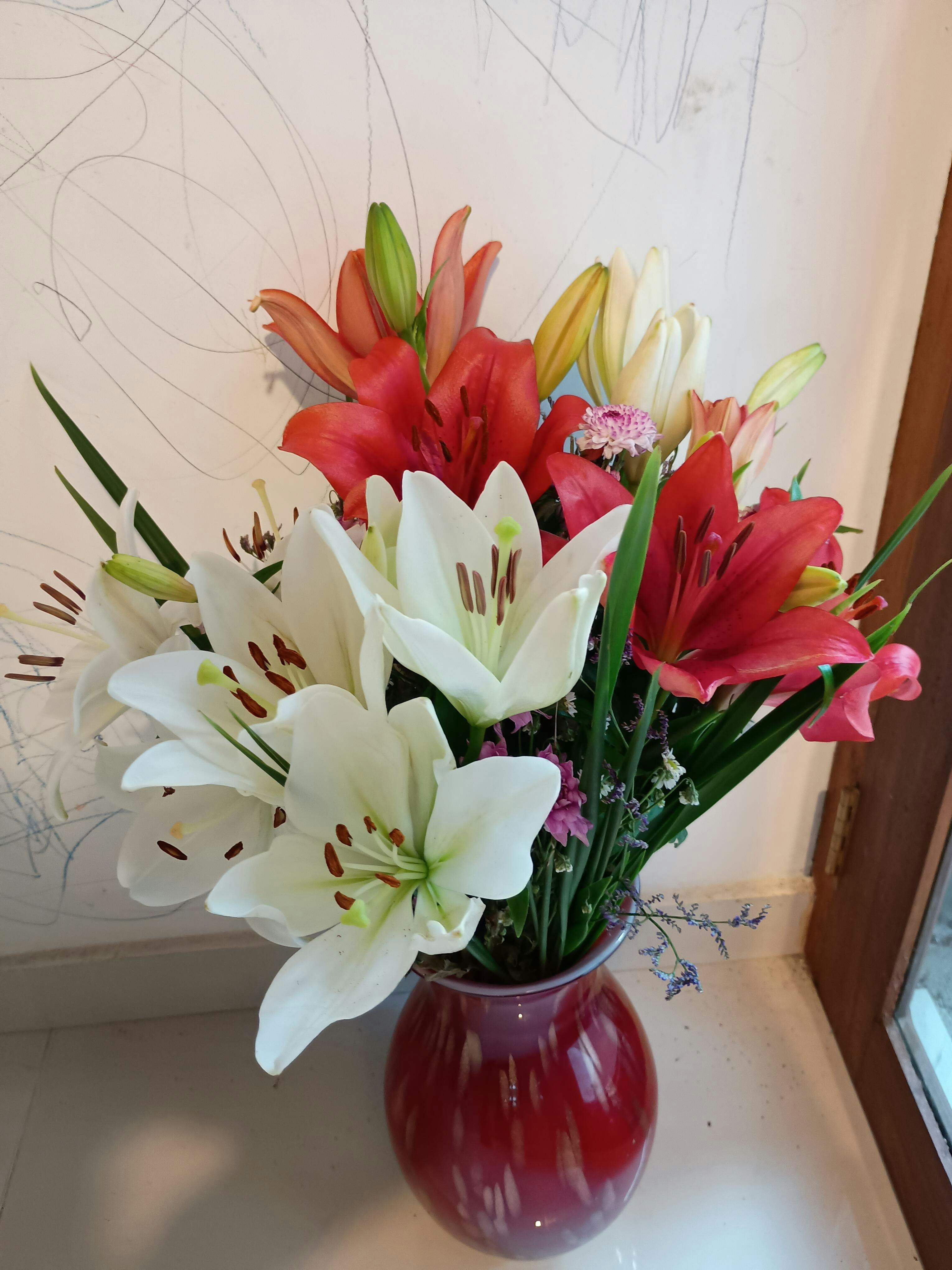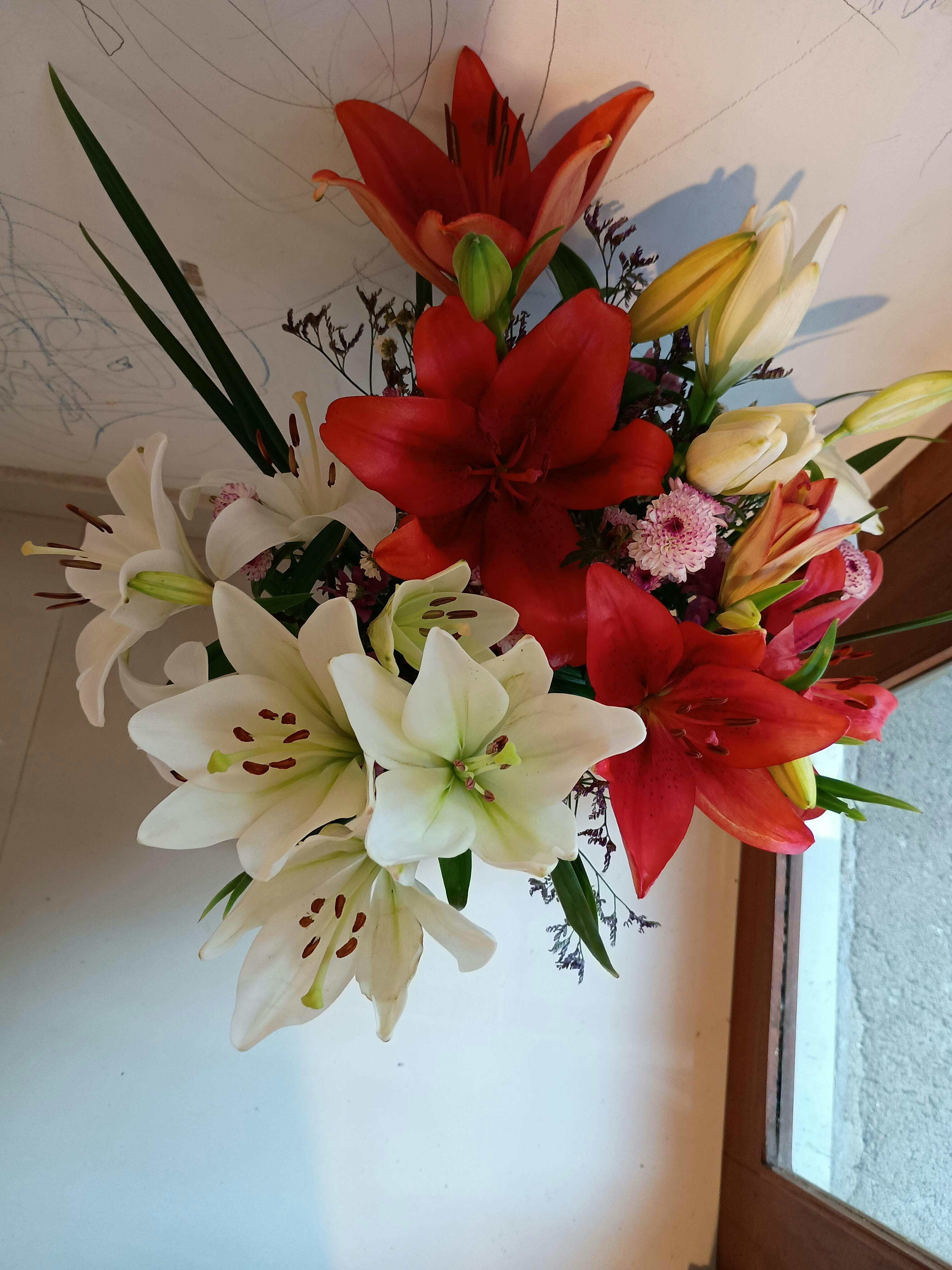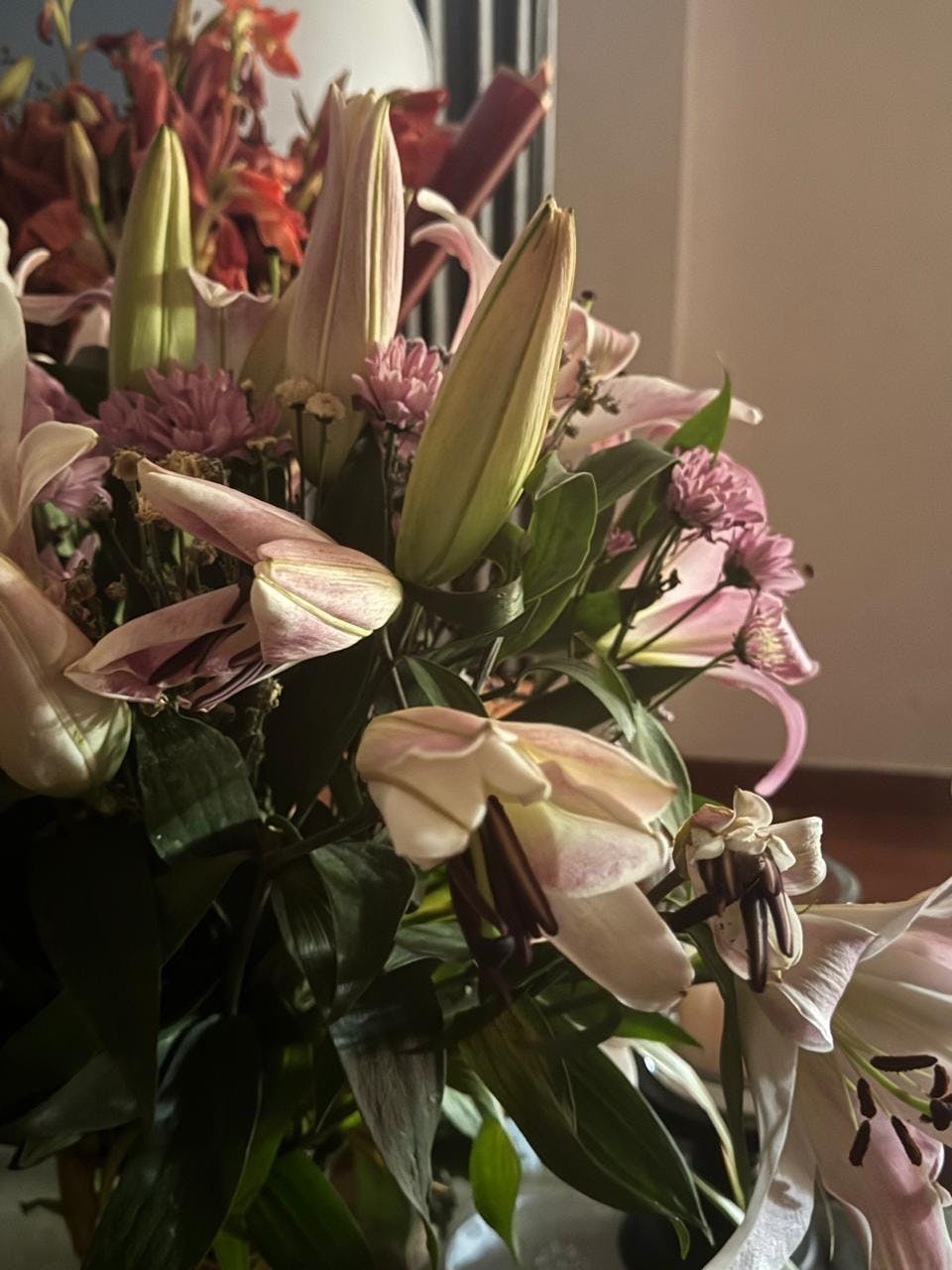 Large- 15 stems of pink lillie's + fillers and wrapping