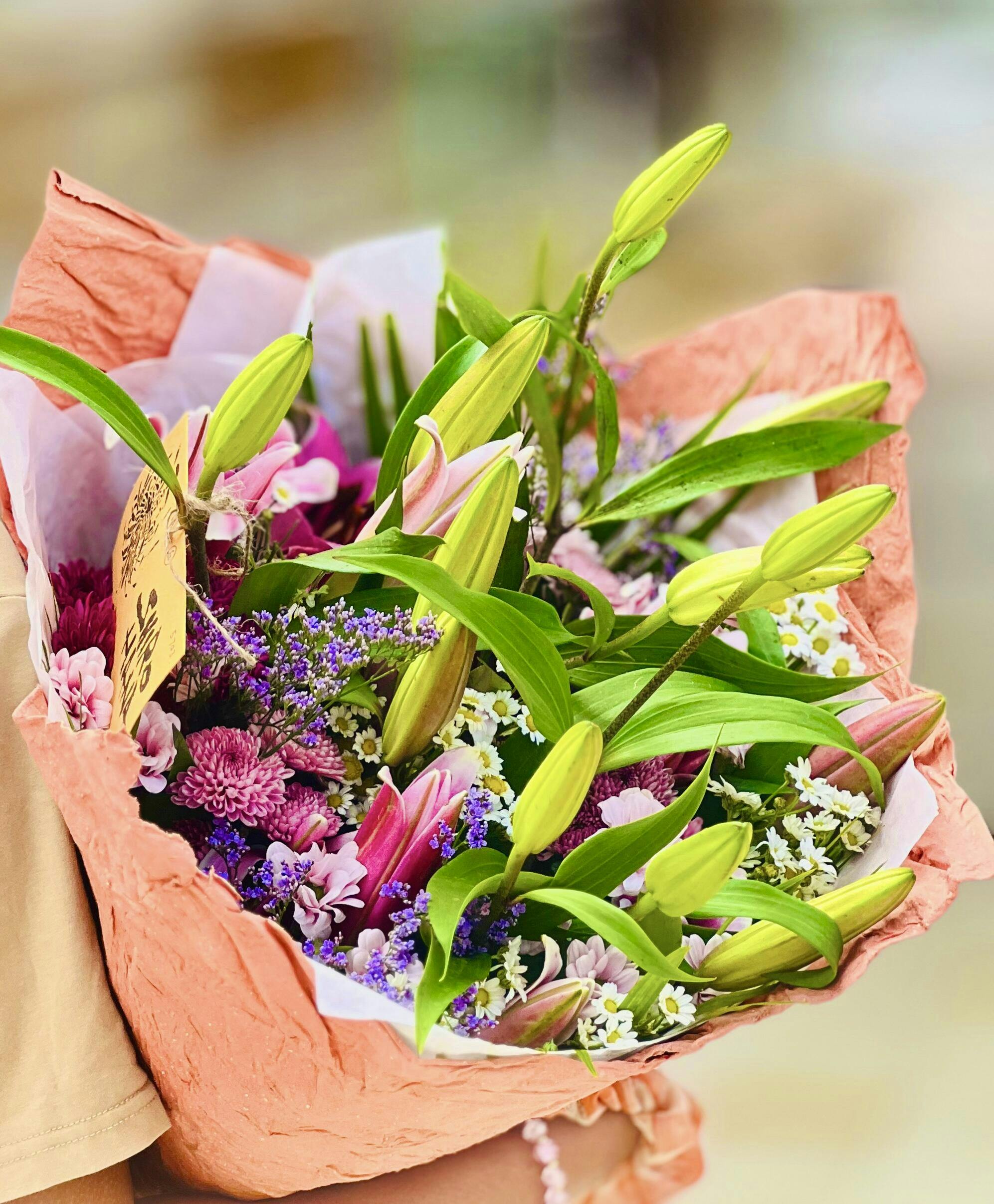 Small - 5 stems of pink lillie's + fillers and wrapping