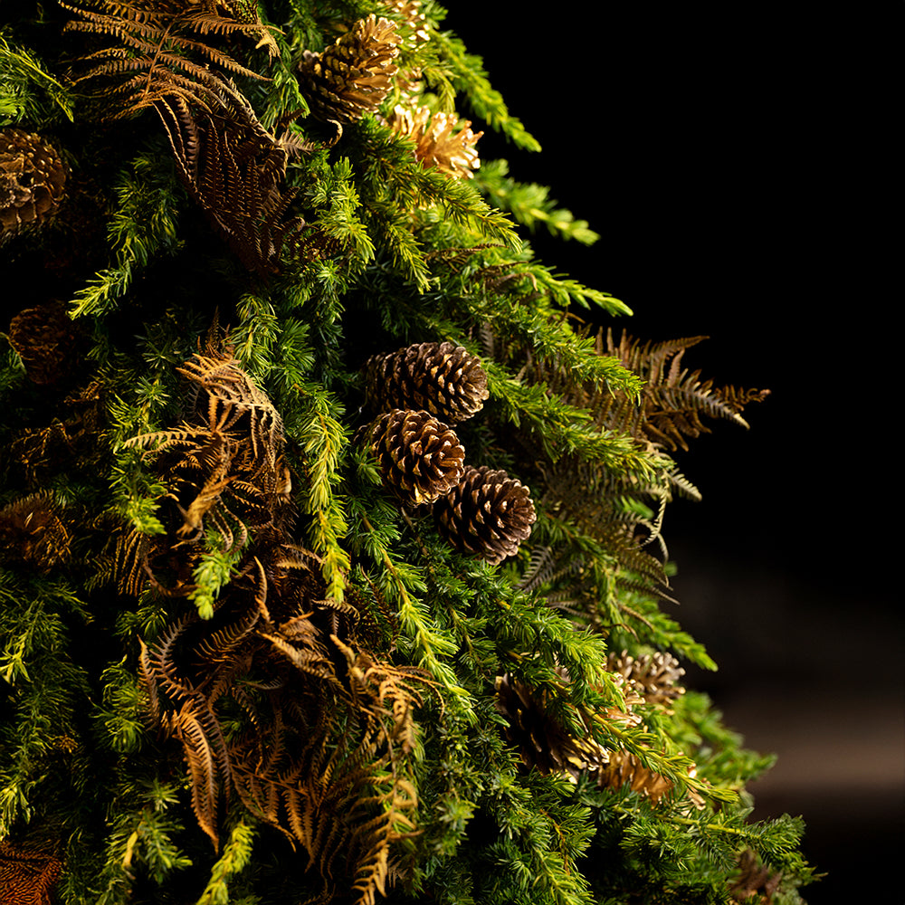 A simpler 4 feet Christmas–tree inspired display using coves, a star topper, greenery and a 12″ pan-basket...